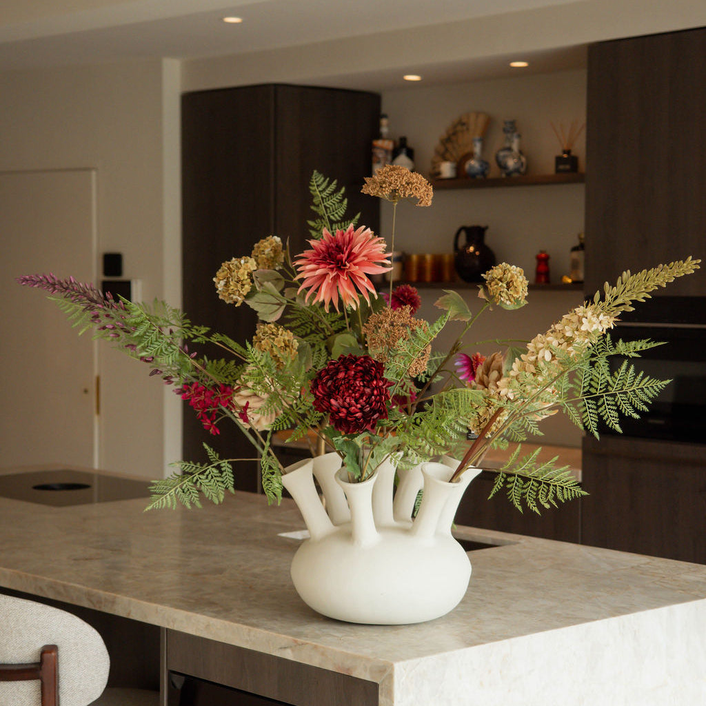 Wij zijn Kim en Amy, tweelingzussen én de oprichters van Two Blooms! Onze gedeelde liefde voor styling en trends bracht ons bij kunstbloemen. We waren verrast hoe prachtig en bijna levensecht ze tegenwoordig zijn. Wat wij het leukste vinden? Creaties maken die passen bij elk interieur en elk seizoen.
