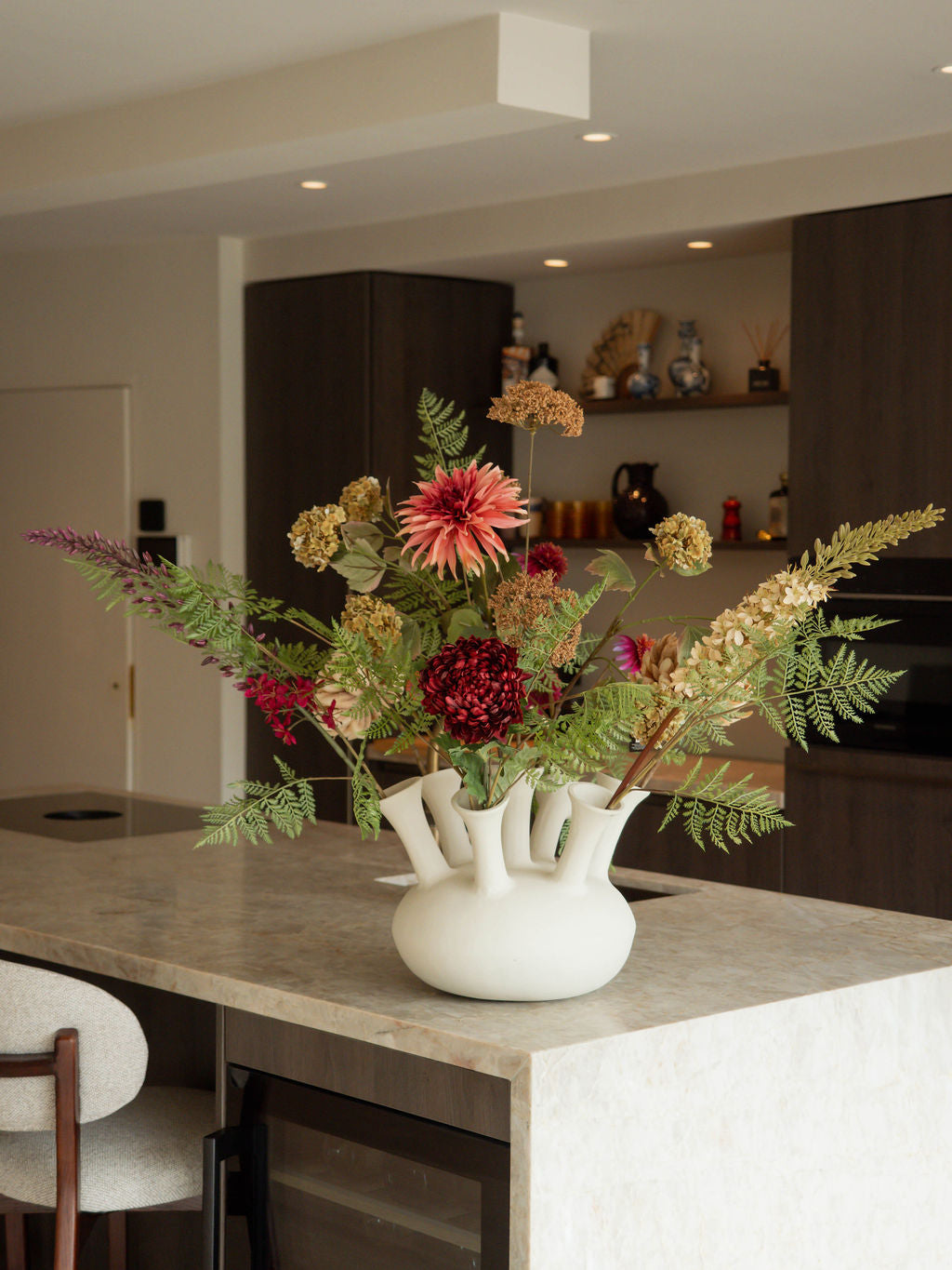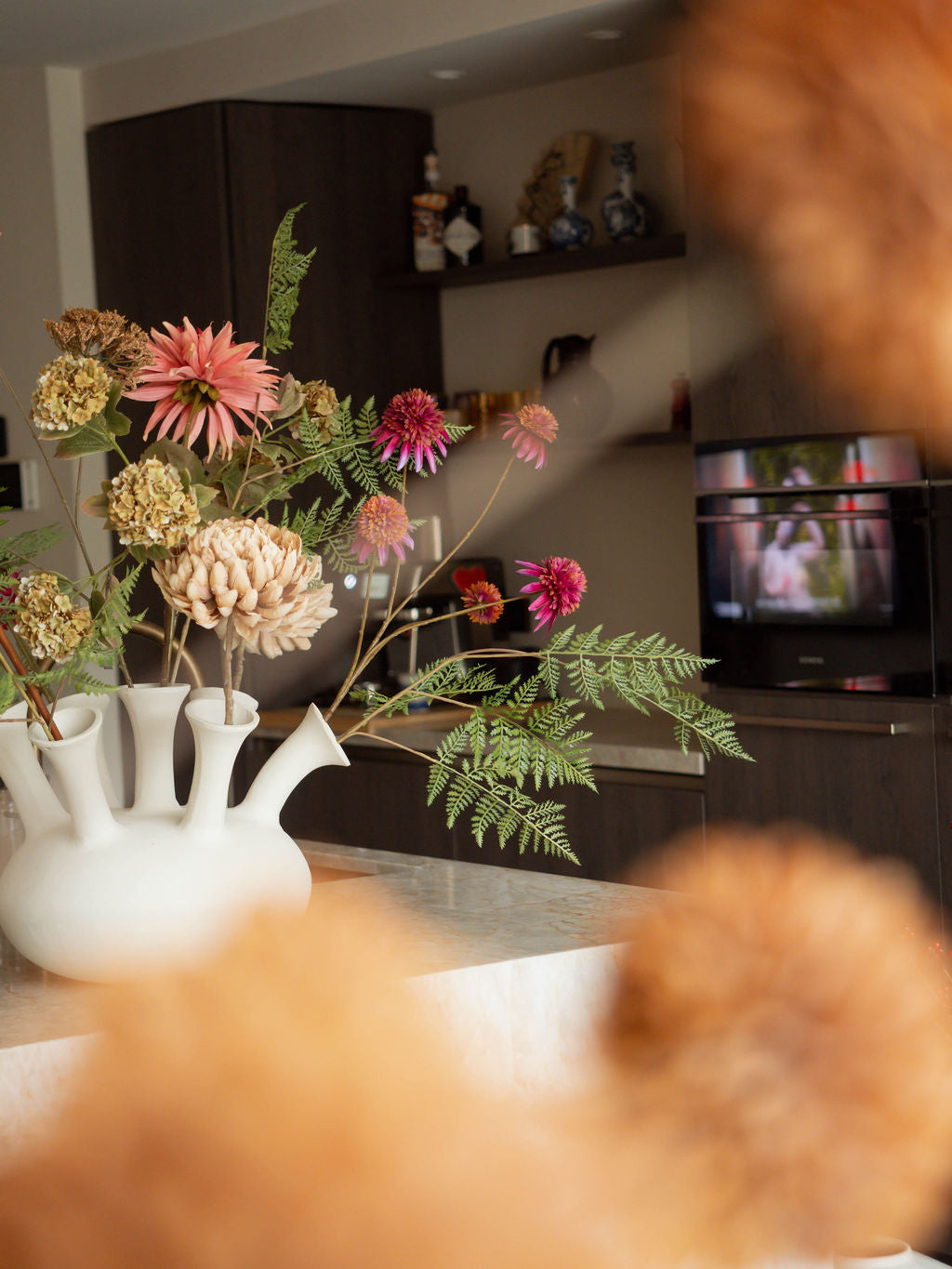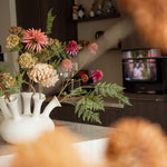 Combineer de toetervaas met onze pompom takken of boeketten voor een compleet geheel. De vaas staat prachtig op het aanrecht, de eettafel of een dressoir.